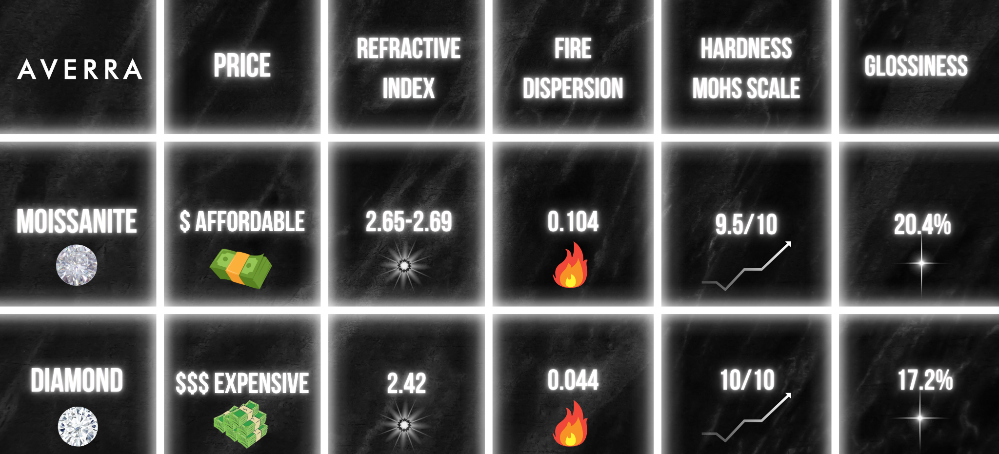 Moissanite has a higher refractive index than any gemstone on earth — meaning our pieces hit harder and sparkle louder than traditional diamonds.